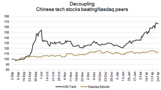 Within the equity component of our portfolios, we have added and will continue to increase exposure to international markets, such as Europe and China. Investors are shifting their focus away from the U.S. stock market to European and Asian equities as higher economic stability and relatively cheaper valuations in those regions offer better opportunities. In particular, we want to highlight our shift from U.S. technology to Chinese technology that has been fruitful thus far. The chart below shows the outperformance of Chinese technology stocks over U.S. technology stocks since the fall of 2024. Even with the U.S. announcement of tariffs on China, Chinese technology stocks have continued to march higher. The key takeaway is that there are still pockets of strength in the global stock market and that is good news for global investors.